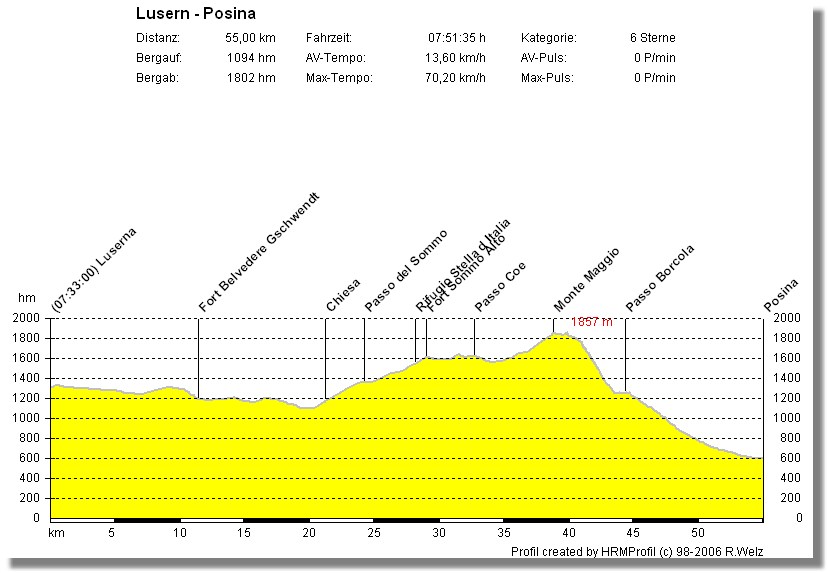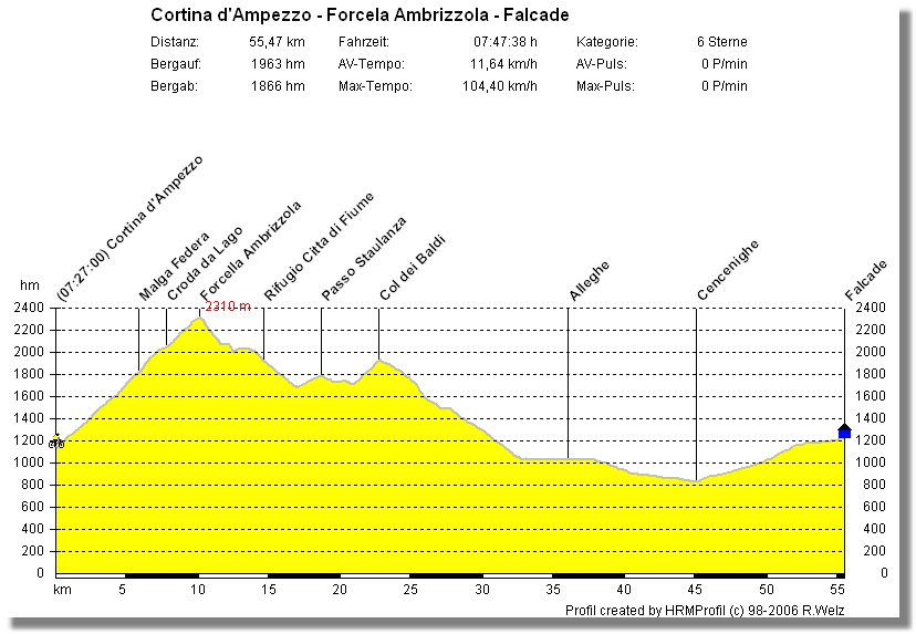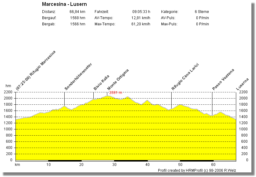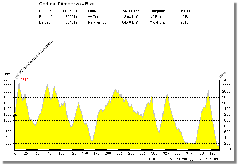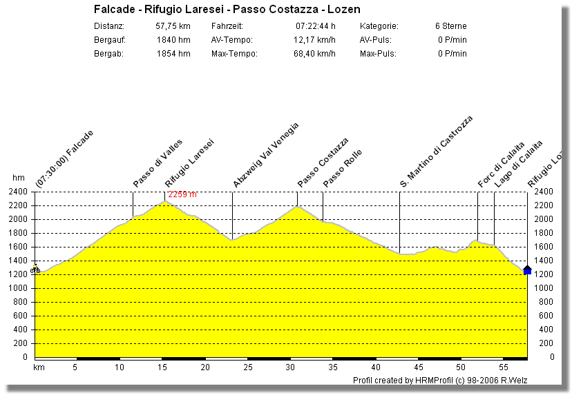 Leichte Abänderungen des klassischen Streckenverlaufs bzw. Zugabe des Passo Buole und Altissimo rundeten die Planung ab.