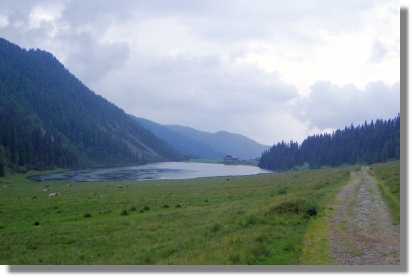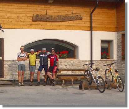 San Martino ist ein recht großer Skiort und wirkt nicht richtig einladend. Wir finden aber bald eine nette Einkehrmöglichkeit und machen ausgiebig Rast. Trotz des immer schlechter werdenden Wetters starten wir Richtung Camping Sass Major und folgen dann dem gut ausgeschilderten Weg Richtung Forcella di Calaita bzw. Lago di Calaita Sentiero 350/16. Die Orientierung ist selbst mit unserem GPS Gerät nicht einfach. Sehr viele Wege zweigen ab und selbst die Tabacco Karte scheint hier nicht genau zu sein. Ausnahmsweise kann man sich aber auf die guten alten Wegweiser verlassen. Der Weg führt teils bergauf, viel auch bergab bis zum Beginn einer lästigen und steilen Schiebepassage (ca.20 Minuten) bis zum Forcella di Calaita (1.680). Es wäre einen Versuch wert, über den anscheinend neu angelegten Weg zur Malga Scanaiol zu fahren und dann dem Steig Richtung Forcella zu folgen. Da es jetzt leicht zu nieseln beginnt, beeilen wir uns aber, auf dem etwas holprigen aber fahrbaren Weg zum Rifugio Lago di Calaita (1.621) zu kommen. Eine Rast am See wäre sicherlich nicht verkehrt, wir flüchten aber vor dem drohenden Regen weiter hinunter zu unserer Unterkunft: Ristorante Bar Rifugio Lozen (1.179) +39 0439.719066 http://www.lozen.it/.