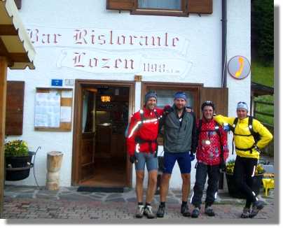 Da die Jungs den Tourenplan wieder einmal nicht genau gelesen haben, fällt ihnen gar nicht weiter auf, dass wir in Lienz bereits um 6:00 früh mit dem Auto nach Cortina starten (Danke Annemarie). So können wir bereits um 7:30 in der Nähe des Campingplatzes Cortina (1.120) zur heurigen Transalp starten.