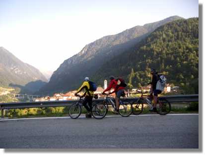 Von Canal San Bovo geht es hinauf zum Passo Brocon (1.615). Diese Straße ist in sehr angenehmer Steigung angelegt und da wir sehr früh unterwegs sind, werden wir vom Verkehr verschont. Auch optisch bietet dieser Weg einiges und ich empfinde die Auffahrt als sehr kurzweilig. Am Passo angelangt, treffen wir wieder die Citybike-Transalper – sie wollen heute noch den Cinque Crocci fahren – Respekt!!