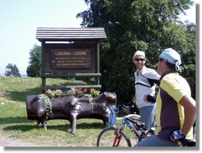 Auch dieses Frühstück ist ‚molto grande’ und so können wir die heutige „Ruhe“-Etappe gut gestärkt starten. Bei der Planung ist dieser Tag als Erholung vorgesehen (mit der Möglichkeit einer Erweiterung der Etappe nach Lust und Laune). Die Länge der „Ruhe“-Etappe ist jedoch goldrichtig, da die Besichtigung der Forts und Kriegsschauplätze bzw. der Trail vom Monte Maggio doch einiges an Zeit in Anspruch nimmt. Wenn man einmal in dieser Gegend ist, wäre es schade, die Forts nicht anzuschauen. Zuerst fahren wir in einer großen Schleife auf die andere Talseite und biegen dann in den (Rad)Weg „1oo km de Forti“ ab. Dieser Weg, der zum Großteil identisch mit dem Senterio della Pace ist, verläuft auf dieser Hochebene stets entlang der Kriegsschauplätze des 1.Weltkrieges. Nach dem Abbiegen geht es teilweise steil hinunter bis zum Fort Belvedere Gschwendt (1.177). Dieser Abstecher ist absolut empfehlenswert – erstens ist die Aussicht hier logischerweise fantastisch (damals wollte man eine gute Aussicht aus taktischen Gründen haben) und zweitens ist das Fort fast vollständig erhalten und kann besichtigt werden. Wir schauen uns den gewaltigen Bau an und machen natürlich die obligatorischen Beweisfotos. Diese Bunkeranlage ist imposant und bietet einiges an interessanten Informationen. Von hier geht es weiter durch die Dörfer rund um den Lago di Lavarone. Wir befinden uns wieder in der Zivilisation. Es herrscht reges Treiben und wir können bei einem Bankomat unsere finanziellen Mittel aufstocken (Bankomaten sind hier selten). Die Auffahrt zum Passo del Sommo (1.343) ist in recht gemütlicher Steigung angelegt und optisch reizvoll. Nur der Verkehr ist etwas störend. Heute erkennen wir auch unseren Kräfteverschleiß, wir lassen eine Rennradfahrertruppe doch glatt ziehen (forza Fritz!?). Kurz nach dem Pass geht es links, wieder auf Schotter, Richtung Rifugio Stella Italia (1.536). Auch dieser Weg ist mit mehreren Hinweisschildern zu den Aktivitäten im 1.Weltkrieg ausgestattet und wer will kann sich informieren. Das Rifugio sieht verlockend einladend aus, da es aber noch zu früh für Mittagessen ist, fahren wir hinauf zum Fort Sommo Alto und machen hier ebenfalls eine Erkundungstour – auch empfehlenswert.