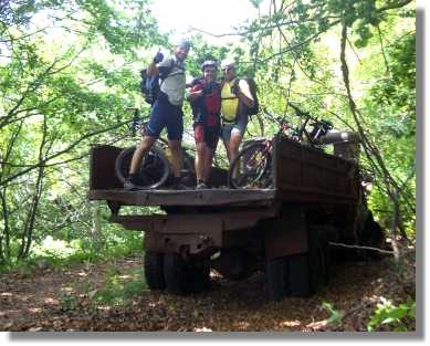 Fritz hat zwar einen extra dicken Spezialschlauch besorgt, trotzdem hat gerade er den ersten Defekt. Dafür heimst er natürlich Spott ein. Trotz Defekt und gemütlicher Fahrt sind wir nach der Abfahrt auf dem Forstweg bis C.Giarighi (966) und der Asphaltstraße viel zu früh in Castello Tesino (860). Nach langem Hin und Her und einen Bierchen beschließen wir, eine Jause zu kaufen (wie unwürdig). Diese verspeisen wir dann gemütlich an einen Rastplatz. Im Prinzip ja nichts Schlimmes – aber wie Martin richtig erkennt – ohne 4x4 stimmt es halt nicht.