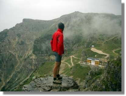 Am Passo gibt es zwar ein Rifugio - da das Wetter aber nicht sehr freundlich ist, beeilen wir uns, hinunter zum Passo Rolle (2.000) zu kommen. Da dieser Weg auch als Taxizubringer dient, ist er sehr gut in Schuss. Vom Passo Rolle geht es über Asphalt und vielen Kehren mit teilweise tollen Ausblicken hinunter bis San Martino di Castrozza (1.460).
