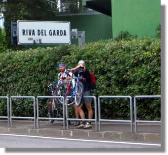 Allerdings traue ich mich mit meiner etwas gewagten Konstruktion nicht, den Trail vom Altissimo hinunter zu fahren. Wir vereinbaren daher, uns in Nago zu treffen. Ich fahre über Brentonico und Mori nach Nago. Das ist normalerweise kein Problem. Nach meinem heutigen Schwächeanfall ist selbst das noch anstrengend genug. In Nago hat das vereinbarte Lokal natürlich geschlossen und so setzte ich mich in der Nähe auf eine Parkbank und raste erst einmal ordentlich. Da die Jungs eine halbe Stunde nach der berechneten Zeit noch immer nicht da sind, fahre ich hinunter nach Riva zur Hafenbar – mich dürstet nach Bier!