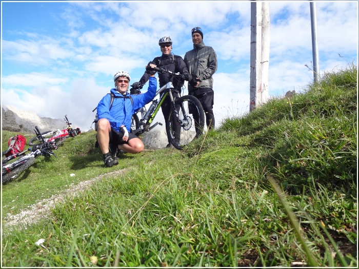 Die letzte Steigung zum Passo dürfen wir unser Material wieder schonen. Endlich ist es vollbracht - wir müssen nur noch durch tiefsten Dolomitenschotter zur Calvi Hütte hinuntersurfen.