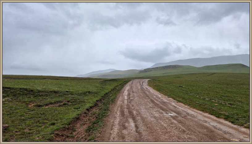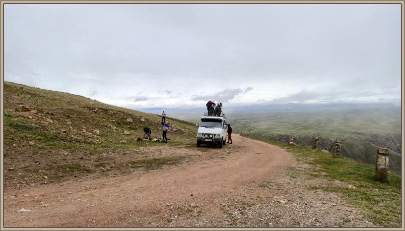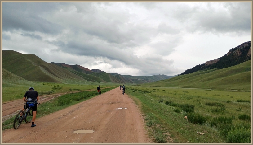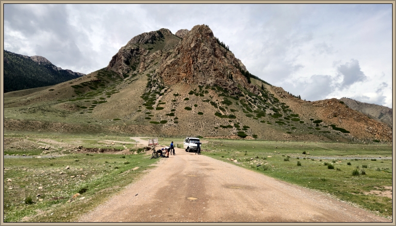 Als der Regen nachlässt, steigen wir wieder aufs Rad und rollen hinunter bis zur Hauptstraße. Dort verladen wir die Bikes erneut und fahren nach Naryn.