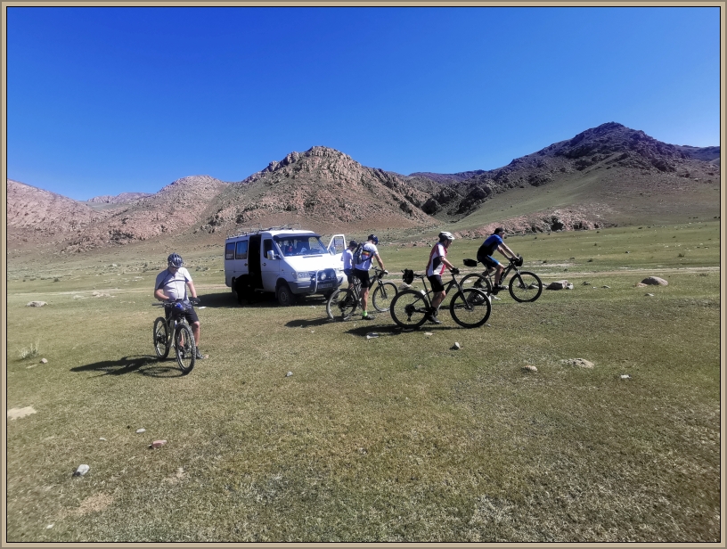 Nach einem stärkenden Frühstück steht heute ein 37 Kilometer langer Transfer bevor – unser Ziel: der Semiz-Bel Pass auf 2.500 Metern Höhe. Über holprige Pisten, vorbei an Felsen und Schlaglöchern, bringt uns Bolot in rund einer Stunde zu unserem Startpunkt. Der erste Abschnitt führt uns direkt bergauf: teils steile Passagen, aber schon bald stehen wir auf 2.715 Metern und blicken auf eine weite, sanft gewellte Grashochebene.