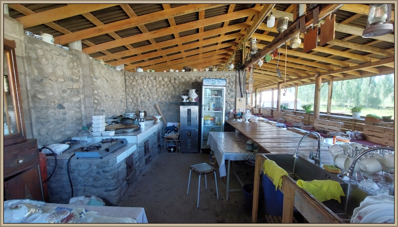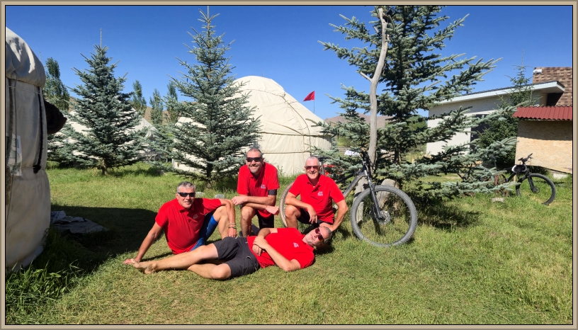 Die letzten Kilometer auf Asphalt rollen wir mit Tempo dahin. Am späten Nachmittag erreichen wir das Jurtenlager Jaichy Agro – eine kleine Luxusversion mit Toiletten und Dusche. Nach der staubigen Fahrt ist die Dusche ein Geschenk. Im offenen Gastraum gibt es sogar Bier – zumindest eine Runde, denn danach ist Schluss. Zum Glück haben wir im Bus noch Vorräte.